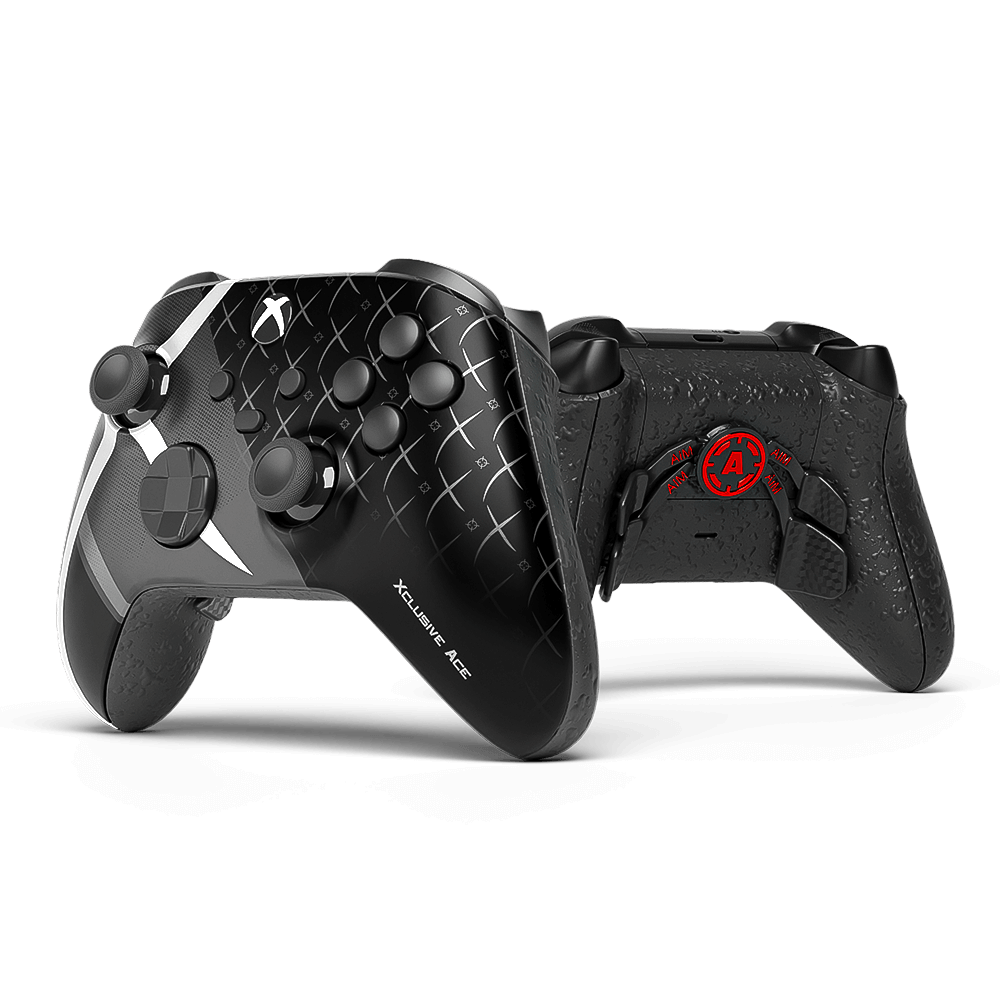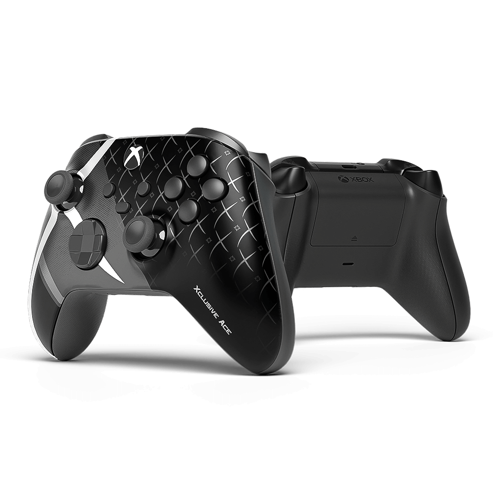Ehi ragazzi! Il suo nome è Ace e questo è il design firmato TheXclusiveAce! Questo controller sfoggia una base nera opaca super stealth, con tagli argentati/bianchi affilati che attraversano grips e frontale come cicatrici di battaglia nate dalle tue linee di mira. Pura energia Ace, preciso, letale, costruito per dominare.